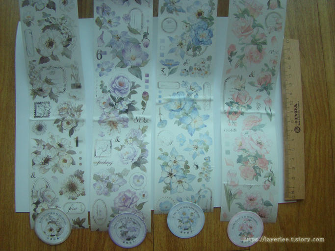 이번에는 꽃무늬 마테와 레터링 그리고 프레임 메모지를 중심으로 구매했어요.