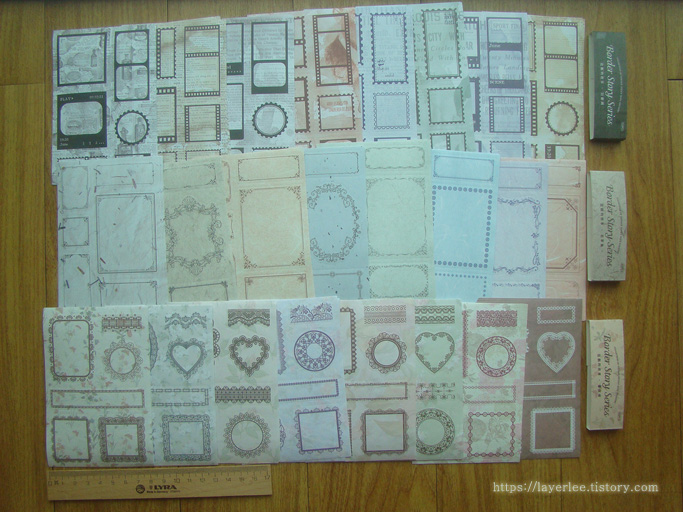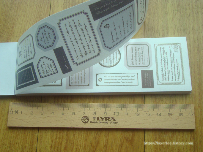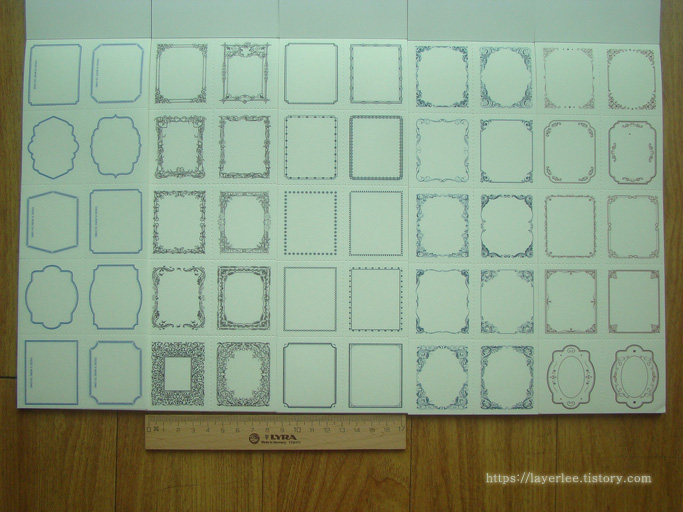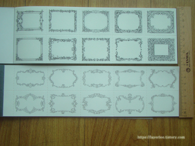 레터링 프레임 화지 스티커북입니다. 3디자인 10매씩 총 30매인데 첫 디자인은 한 장이 모자라더군요.