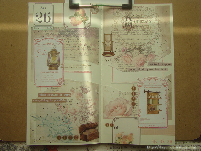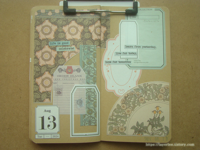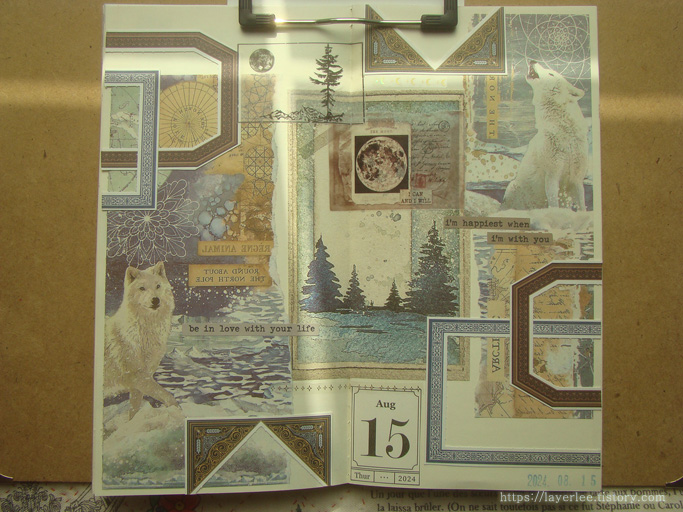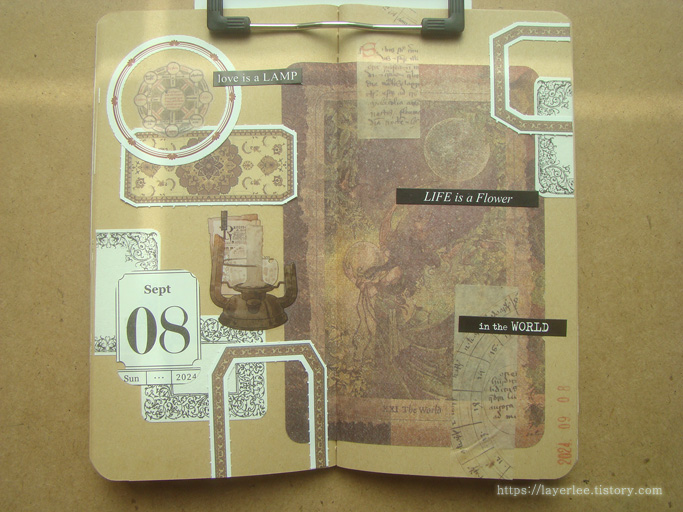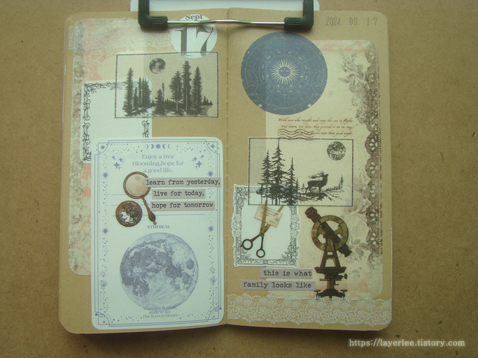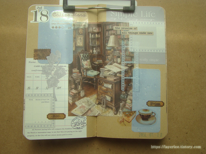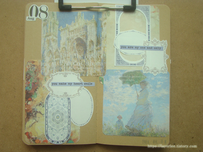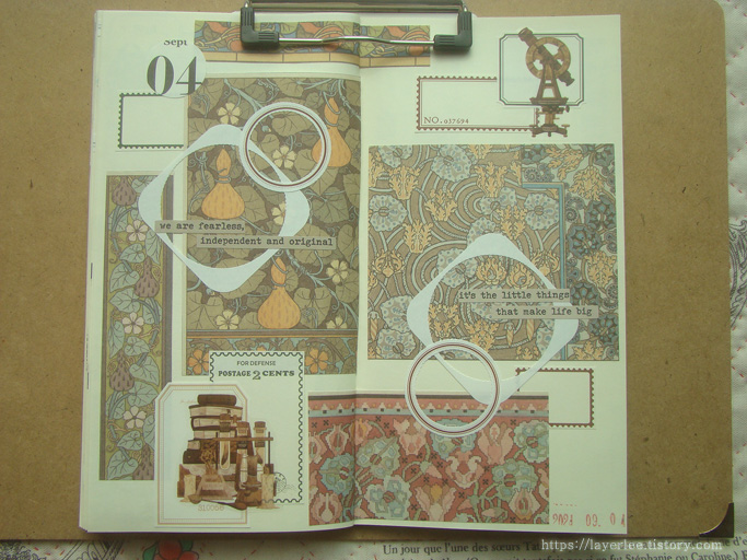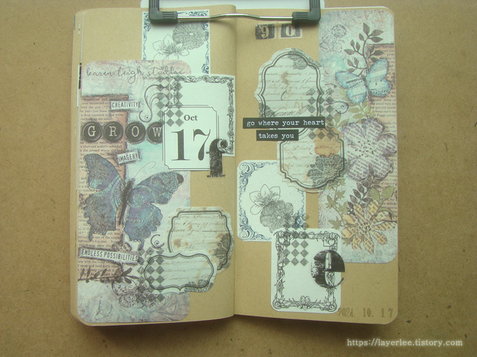 배경지 그림의 독특함이 마음에 들어 프레임에 스탬프를 여러 가지 찍어 함께 조합했습니다.
