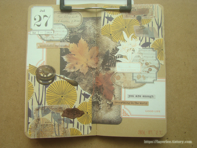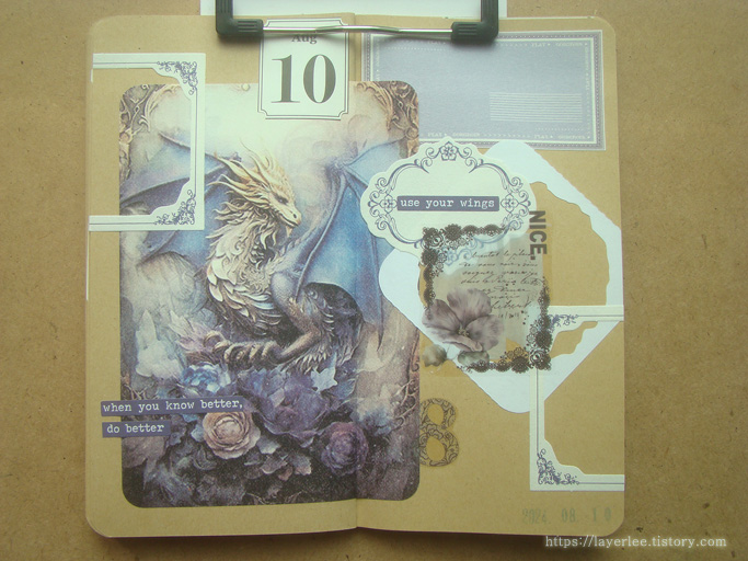 지난 다꾸 포스팅에서 다음에 A5 노트를 사용할까 한다고 했는데 노트를 담은 상자를 뒤지니 커버가 없는 트레블러스 사이즈 노트를 사둔 게 있길래 그 노트를 사용했어요.