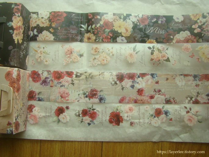 굵은 선과 큼직한 레터링이 들어간 꽃 그림 PET 마테도 폭 6센티, 길이 2미터입니다.