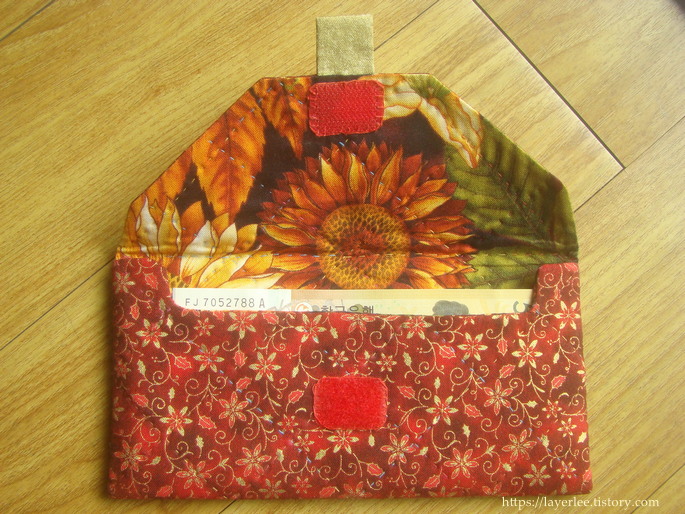 3년전에 만들었던 금색 용돈파우치의 다른 버젼으로 이번에는 붉은색 원단을 사용했습니다.
