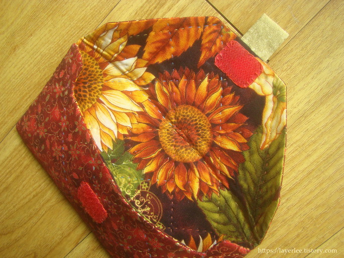 열었을 때입니다. 안감은 해바라기와 호박꽃이 그려져 있어요. 둘 다 부(富)를 상징한다고 합니다.