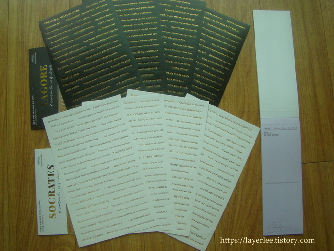 금박 레터링 스티커와 메모장입니다. 메모장은 5디자인 6매씩 총 30매입니다.