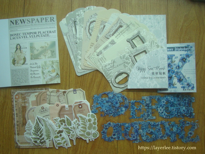 덤은 이렇게 4가지입니다. 스티커북, 다이컷 카드, 태그와 식물 스티커 그리고 알파벳 스티커입니다.