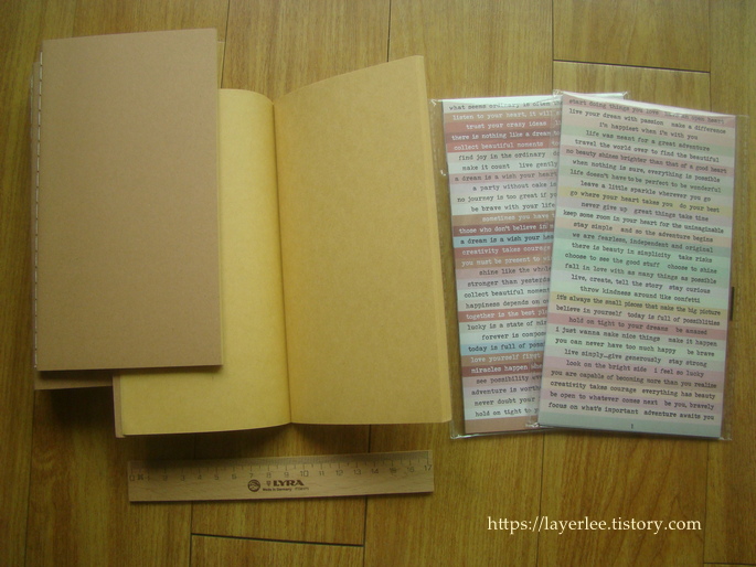 크라프트지 노트와 즐겨 쓰는 다양한 색상의 레터링 스티커입니다.