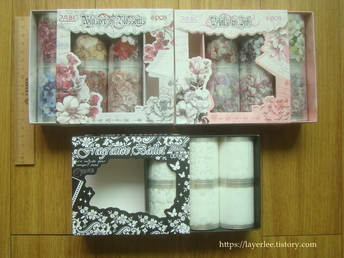 세트로 된 마스킹테이프입니다. 모두 칼선이 있어요.
